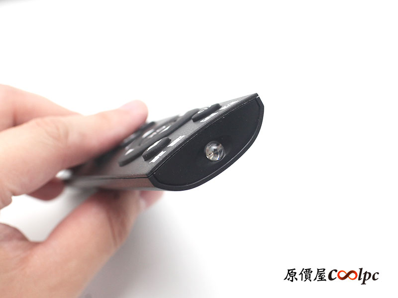 遙控器上共有 10 顆按鈕,關閉鍵可以用來開機,也可以用來鎖定螢幕,鎖定螢幕畫面全黑就瞬間變成鏡子啦!選單鍵可直接跳回主畫面,其餘還有音量調整、方向鍵、確認鍵、返回鍵,其實就把他當作 Android TV 就對了!背面電池蓋拆開可安裝兩顆 4 號電池,最前端為紅外線發射器,由於 Smart Mirror 智慧魔鏡面板本身支援觸控功能,其實不用遙控器也可以使用!