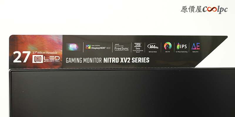 新品上方都貼上了特色簡介,可以看到這款螢幕尺寸為27吋,解析度為QHD 2560×1440,具備VESA DisplayHDR 400 認證、支援AMD Radeon FreeSync、具備VRB 1ms 反應速度模式、144Hz 螢幕更新率、DCI-P3 廣色域設計,並具備Delta E <2 的色彩精準度,除了拿來玩遊戲也相當適合用來進行影像編輯。