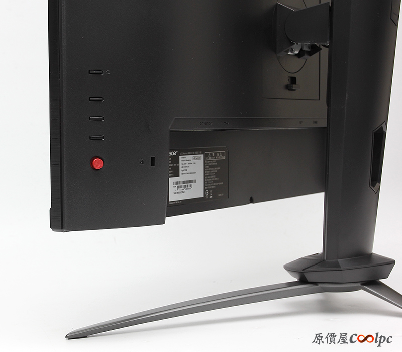 螢幕本體與支架合體的樣貌,不得不說這圓形底座對電競螢幕來說看起來還是缺了點殺傷力啊!