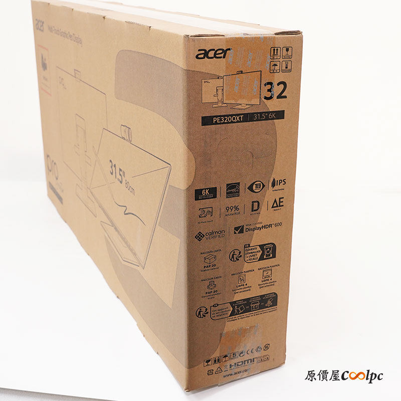 @2026/01/26 ,11:50acer 宏碁螢幕終於也加入創作者系列,今天帶來 ProCreator 旗艦等級的 PE320QXT 螢幕,具備震撼 6K 超高解析度,比標準 4K 更加細緻,肉眼可見所有細節,採用 32 吋 IPS 鏡面面板並結合量子點 (Quantum Dot) 技術,色彩寬廣度達到 99% AdobeRGB 、99% DCI-P3 廣色域,還有 Delta E<1 色彩準確度,通過 Calman verified 認證和 VESA DisplayHDR 600 標準,確保色彩能夠真實還原,滿足創作者需求,更厲害的是結合了多點觸控,內附一隻主動式手寫筆,可以直接拿來繪畫創作作品,省下購買繪圖板的費用,螢幕上方還有搭載 4K 800萬畫素鏡頭,不論是會議還是線上展示作品,都能清晰可見!廢話不多說,讓我們一起來看看它的開箱吧。