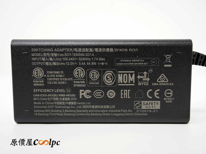 變壓器輸出為 12V – 5.4A – 64.8W。