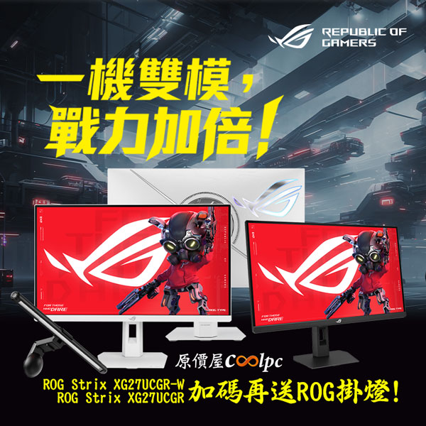 還在為了選 4K 高畫質還是更高的刷新率的螢幕而猶豫不決嗎?這檔帶來華碩 ROG 全新 ROG Strix XG27UCGR Gen2 (XG27UCGR)與 XG27UCG-W Gen2 (XG27UCGR-W)雙模(4K 163Hz/FHD 485Hz)電競螢幕,一台抵兩台,徹底解決選擇障礙!這次還有白色的外觀可以選擇,價格還跟黑色一樣,加量不加價, 不用一萬三的價格,還要加碼再送價值$4688元的 ROG 螢幕掛燈,CP 值突破天際啦!