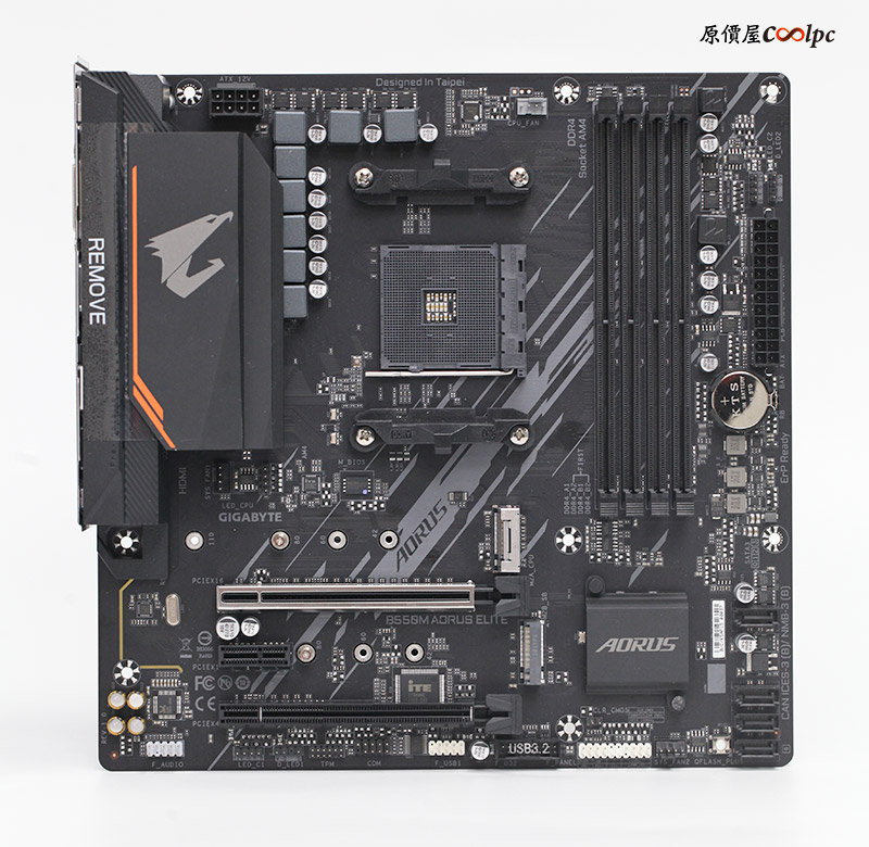 其實也能從主板的名稱上分辨出不同之處,多了一個M字的B550M AORUS ELITE,的確在主機板的尺寸上改成了M-ATX的規格(24.4 x 24.4 cm),而外觀上也是使用較低調基礎的設計,不過靠I/O處的散熱片還是使用了大型的厚度散熱片設計,算是還不錯的用料喔!