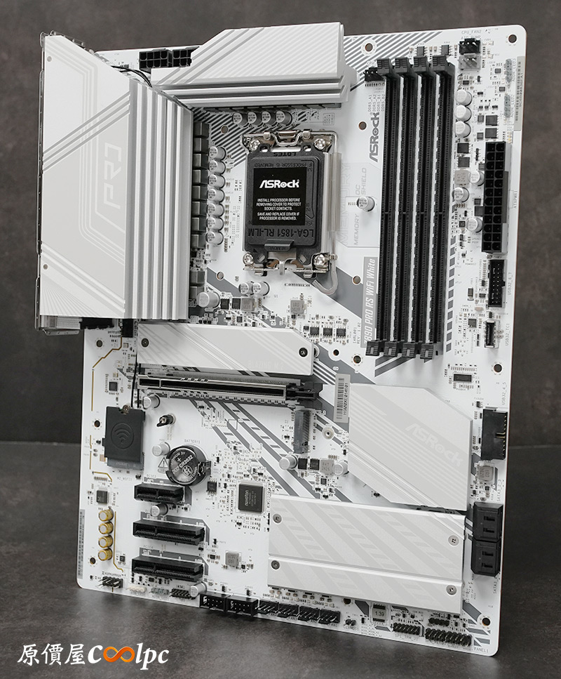 最後一張是ASRock Z890 PRO RS WiFi White,由名字來看他有黑色版本,放上來給玩家們做個對照,看大家比較喜歡白色洋裝還是黑白交錯的晚禮服,不過接下來會以白色版為主介紹。