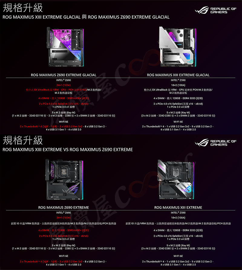 .華碩 ROG MAXIMUS Z690 EXTREME GLACIAL(E-ATX/1H/I 2.5G+M 10G+Wi-Fi 6E)24+1相 $59990