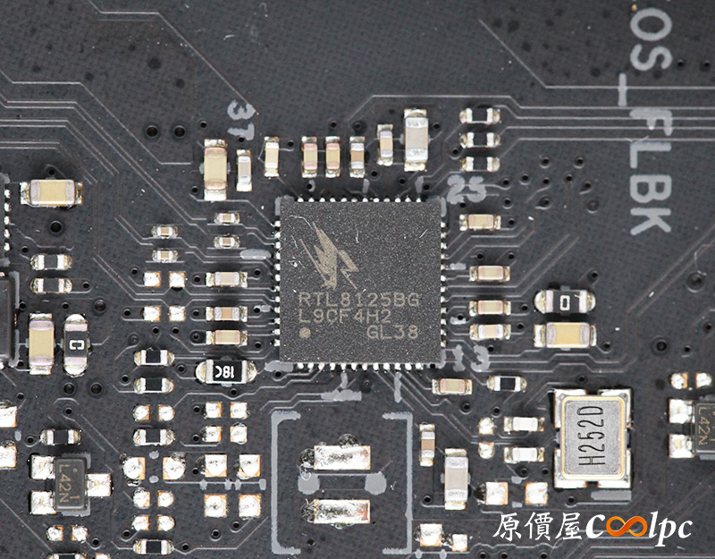 接著卸下所有散熱裝甲查看內部用料,TUF GAMING X670E-PLUS WIFI採用8層PCB板,14+2相供電,每相可承受70A電力,並使用DIGI+ EPU ASP2206做為主控晶片,MOSFET晶片為MPS2213、MXL6730S,記憶體供電MOSFET RA14B,TPU自動超頻晶片KB3724Q。主板配備兩顆南橋晶片帶來更豐富I/O資源,USB連接埠部分有USB 3.2 Gen2晶片PI3EQX1004、ASM1543,USB3.2 Gen2x2晶片GL9905。2.5GbE有線網路使用RTL8125BG,WiFi 6E網卡是MEDIATEK聯發科MT7921K。另外還有BIOS晶片W25Q256JWEQ、BIOS FLASHBACK晶片AI1315,PCIe 5.0晶片PHISON PS7101,PCIe 3.0通道切換晶片asmedia ASM1480,華碩AURA晶片32UA0。主板音效使用Realtek S1220A搭配7顆金色音效電容,並透過訊號隔絕線減少干擾。