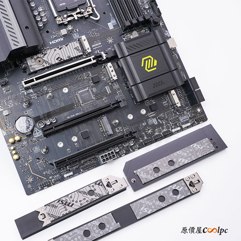 主要的 M.2 是 PCIe 5.0 通道,並且雙面都有導熱貼,安裝好 SSD 記得要把膠膜撕掉啊!