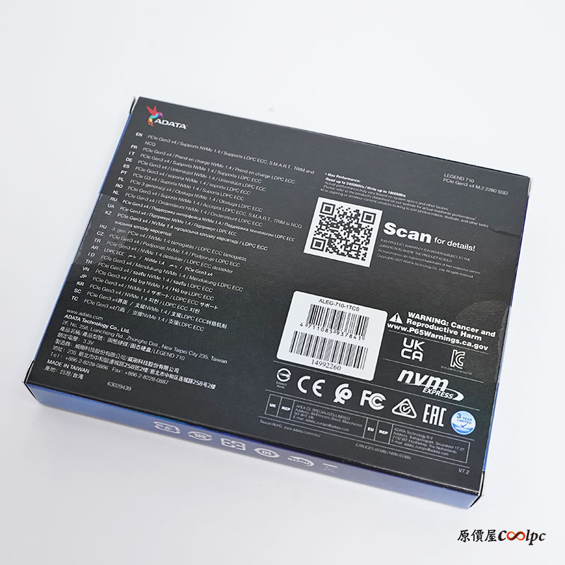 有便宜就給讚!畢竟M.2 SSD已經相當普及化了,不僅是桌上型電腦、小主機、筆電的標準配備,就連NAS系統和外接式硬碟盒也都支援,擁有小體積不占空間,速度也比傳統硬碟和2.5吋的SSD還要更快,相信不會有人不愛啦!今天帶來威剛 Legend 710 1TB NVMe PCIe M.2 SSD,讀寫速度最高2400/1800 MB/s,採用3D QLC 自封顆粒、符合NVMe 1.4標準,並支援SLC快取演算法、HMB(Host Memory Buffer)、LDPC(低密度機奇偶檢查碼)錯誤校正機制和AES 256-bit高階加密技術,來提升讀寫效能、資料安全和使用壽命,內附一片散熱片,還有原廠三年保固,是時候將遊戲碟好好升級升級了!現在讓我們一起來看看他的開箱。
