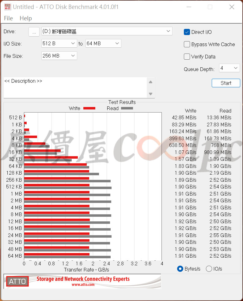 ATTO Disk Benchmark 最高讀寫 2550 / 1920 MB/s。