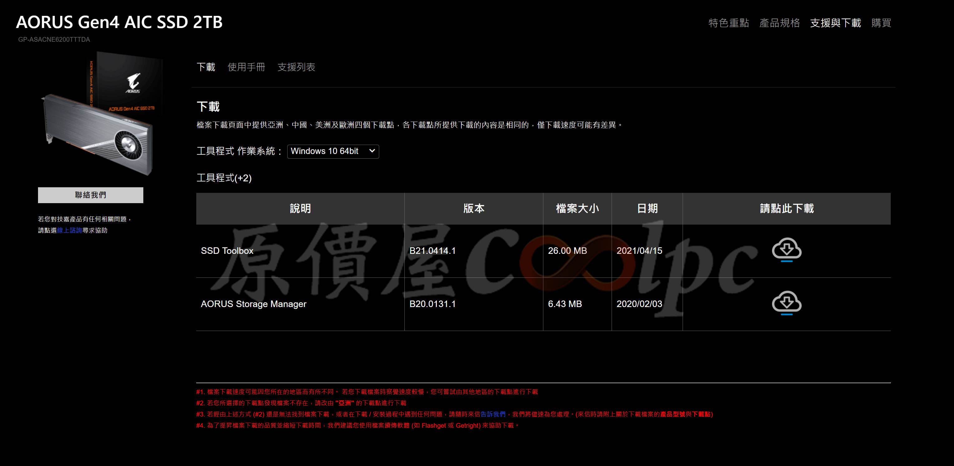 進到系統再到技嘉的官網下載SSD Toolbox和AORUS Storage Manager軟體。(點我下載)