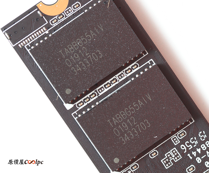 Liteon MUX1 1TB M.2 PCIe SSD的正面可以看見商品標籤,上頭有logo及型號部分,也因為是1TB的容量,所以是雙面顆粒設計,主控晶片使用Phison PS5012-E12,PCIe Gen3x4 NVMe介面,SmartECC LDPC 糾錯機制、AES-256/TCG Opal/TCG Pyrite加密,正反面使用共4顆TOSHIBA TABBG55AIV BiCS3 3D TLC,組成1TB,記憶體顆粒正反面共安裝2顆SK hynix H5AN4G8NBJR,規格為DDR4-2400 512M x 8,電源管理晶片使用PHISON PS6102-22。