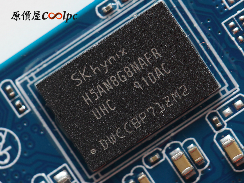 主控晶片使用PHISON PS5016-E16-32,支援PCIe Gen4x4、NVMe 1.3、3D NAND TLC,正反面共使用4顆TABHG65AWV NAND FLASH,記憶體部分使用2顆DDR4 8G SK hynix H5AN8G8NAFR、78ball FBGA,電源管理晶片使用PHISON PS6106-22。