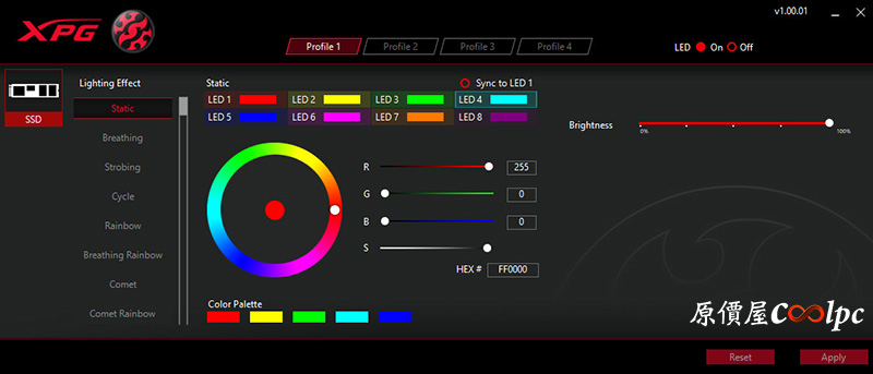 到威剛官網下載燈光控制軟體可以看到提供相當豐富的預設模式並且也都支援自訂變更色彩及速度。