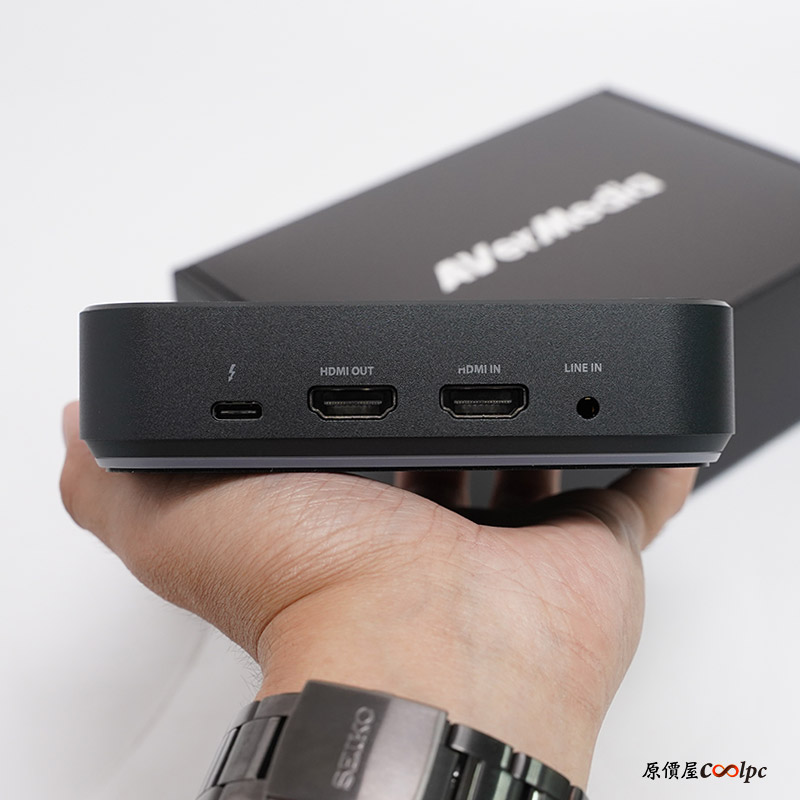 輸入、輸出介面也是相當簡單俐落!1個Thunderblot 3介面、HDMI OUT、HDMI IN、LINE IN。對了要提醒玩家們Type-C和Thunderbolt 3接頭是一模一樣的!但是兩者訊號協定和傳輸速度是不一樣,所以一定要是Thunderbolt 3才有辦法使用喔。