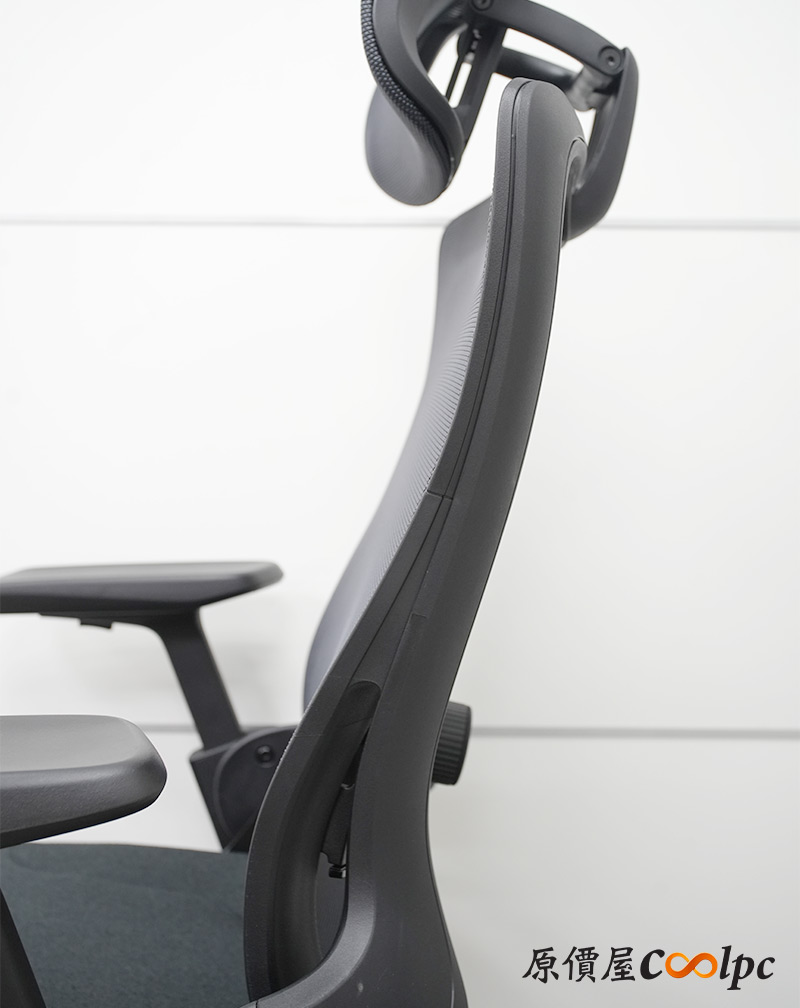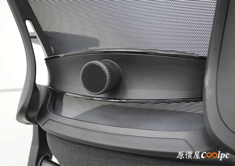 椅背大面積網布防悶熱,從側面看椅背形狀就像脊椎曲線一般,能夠給予腰背良好的支撐,釋放身體的壓力。