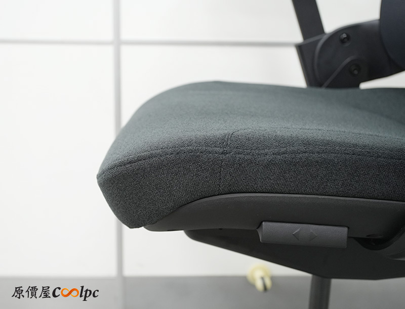 坐墊左側有控制椅墊深淺的按鈕,按住後用手就能輕鬆調整,這點倒是和他牌人體工學椅很不同,整體來說更輕鬆方便一些,並且能針對腿長、姿勢調整位置。