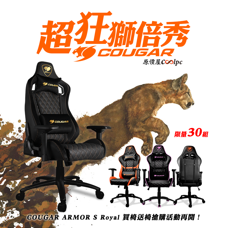 原價屋超狂獅倍秀又來啦~COUGAR ARMOR S Royal買椅送椅活動再開!
