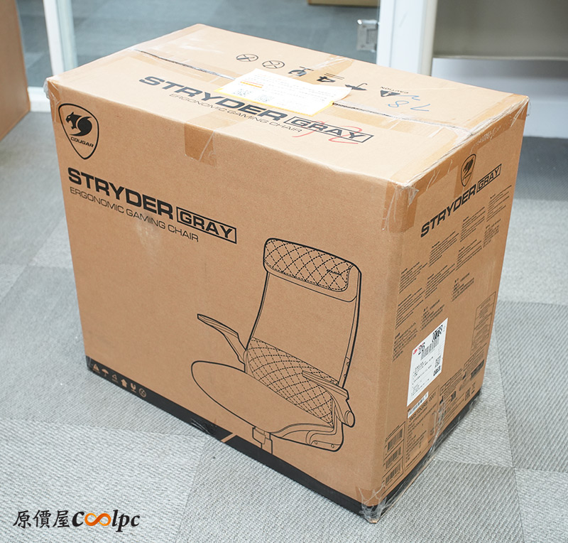 這次的COUGAR STRYDER GRAY人體工學椅經過減塑設計,裏頭基本上沒有使用大型泡棉,包裝體積相對一般椅子要小得多。封面印上STRYDER GRAY字樣,這次拿到的是灰色的版本,並提供椅子的簡圖可參考。
