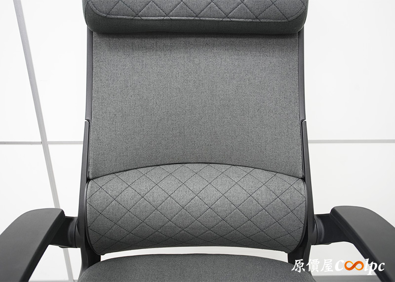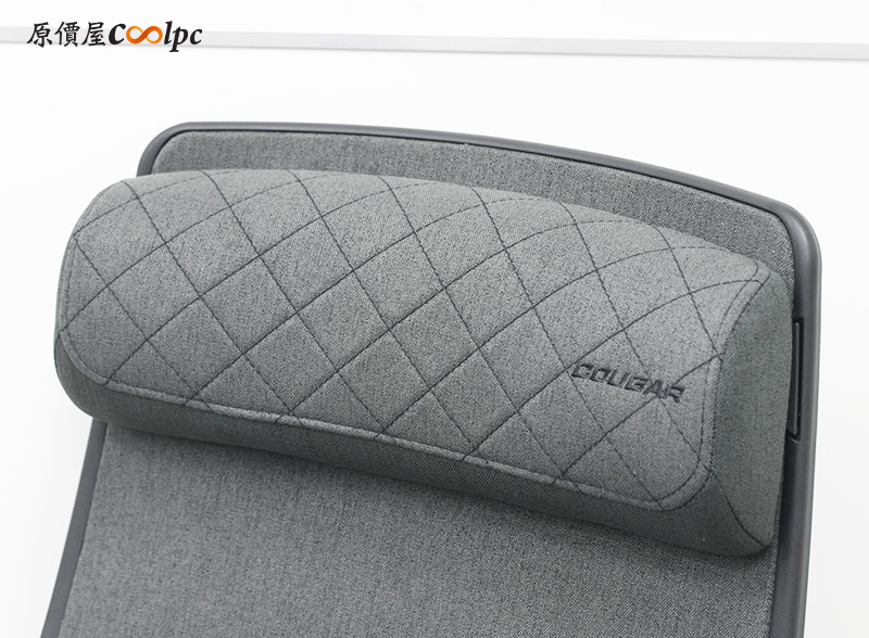 頭枕部分就同時有仿亞麻布和菱格紋縫線,質感先過關了,設計上有人體工學曲線,厚度看來也很出色,能夠給予充足的支撐。上面悄悄縫上COUGAR字樣,設計得十分低調,有助於將使用者的注意力都集中在椅子本身的特色與功能上。