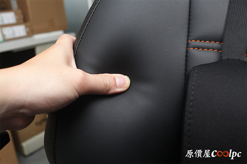 頭枕厚實有彈性,側邊是Carbon碳纖維風格,靠頭的地方也有刺繡COUGAR LOGO。