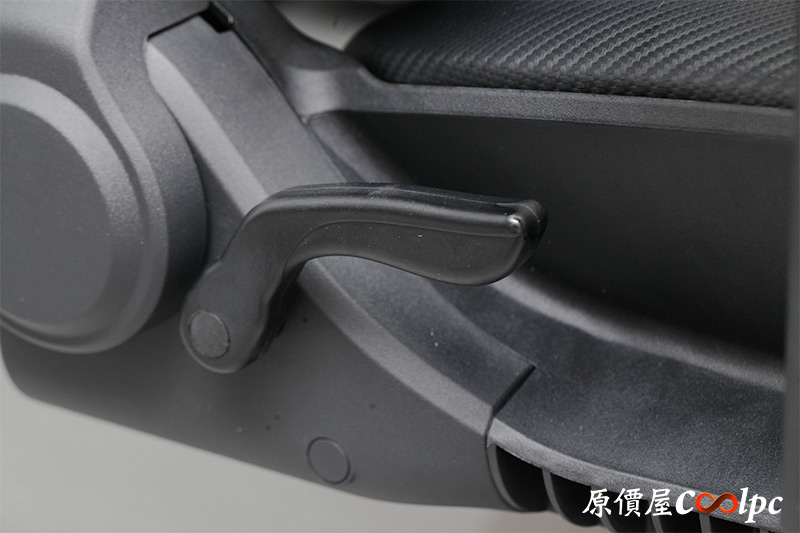 左邊的控制桿則是固定椅背角度,只要後仰到喜歡的角度再拉一下就能把椅背鎖起來囉!同樣控制桿上會有對應的圖示不會拉錯。