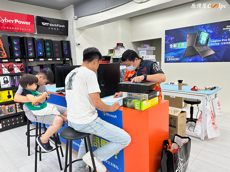 前棟還有個升降桌,除了讓客戶休息和討論之外,也能做些商品的簡易處理,例如我去拍照時,正好店長就在為客人的筆電更換記憶體、SSD,加大筆電容量。