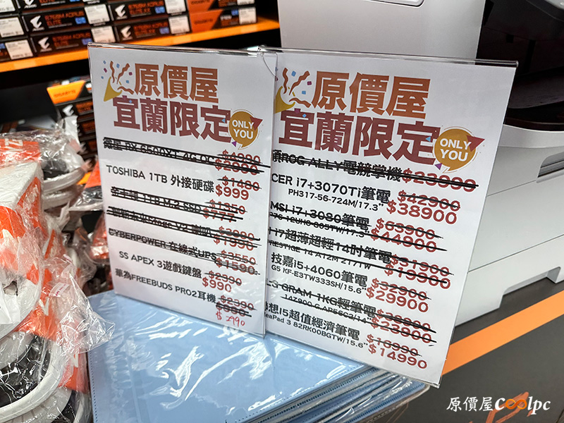 2023/7原價屋大字招牌出現在宜蘭市街頭,這是自2020年疫情開始後的第四家門市(2020/7高雄建國一店擴大、2021/8台北新現代筆電館&DIY館、2022/6台南AORUS技嘉形象館)。來宜蘭時感覺挺微妙的,原價屋物流車隊運載著大大小小的傢私穿越13公里台灣最長的雪山隧道公路後,一片光明進入蘭陽平原。我發現不管是郊區還是市區沒有太高的建築,感覺就很Chill,後來在試營運時也感受到宜蘭(怡然)自得,好像有種默契,不急不徐,偶有人潮卻又不會人擠人,但就是不間斷,期間所有宜蘭限定的促銷同樣是賣光,卻是大部份逐漸的賣光而非秒殺。跟阿邦過去去台中台南高雄等新門市開張時有著截然不同的舒緩步調。話雖如此,但宜蘭人要求的規格可是很高的,阿邦就有親眼看到好幾個客人估了超過七萬的主機後,逛著體驗區按了五千鍵盤和試坐一萬五的電競椅後沒考慮太多就全再加買了!早知道就應該早點來設點呀~原價屋宜蘭新民店是台灣東部第一站,但其實當初也就有意再加開東部據點,不過原價屋開店一向不求快,敬請耐心期待囉!